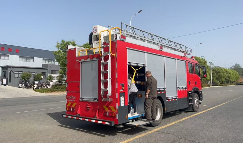汕德卡15米舉高云梯多功能壓縮空氣泡沫消防車是近年消防救援裝備領域的重要創新,整合了云梯舉高、搶險救援、壓縮空氣泡沫滅火等多項功能,形成高效集約化救援解決方案。以下為該產品的核心亮點與技術細節: