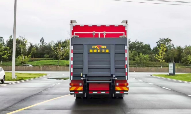 車輛采用標(biāo)準(zhǔn)化拉臂機構(gòu),支持多類型器材箱體快速裝卸。模塊箱內(nèi)部以編織帶和絞繩器固定裝備,確保運輸穩(wěn)固性;箱體容積達(dá)8立方米,可容納22類常規(guī)救援設(shè)備,如消防水帶、破拆工具及生命探測儀,實現(xiàn)“一車多能”的靈活部署。
