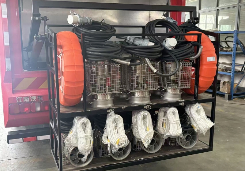 潛水泵配置:配備10臺便攜式潛水泵,單泵流量≥500m3/h,總流量達5000m3/h。